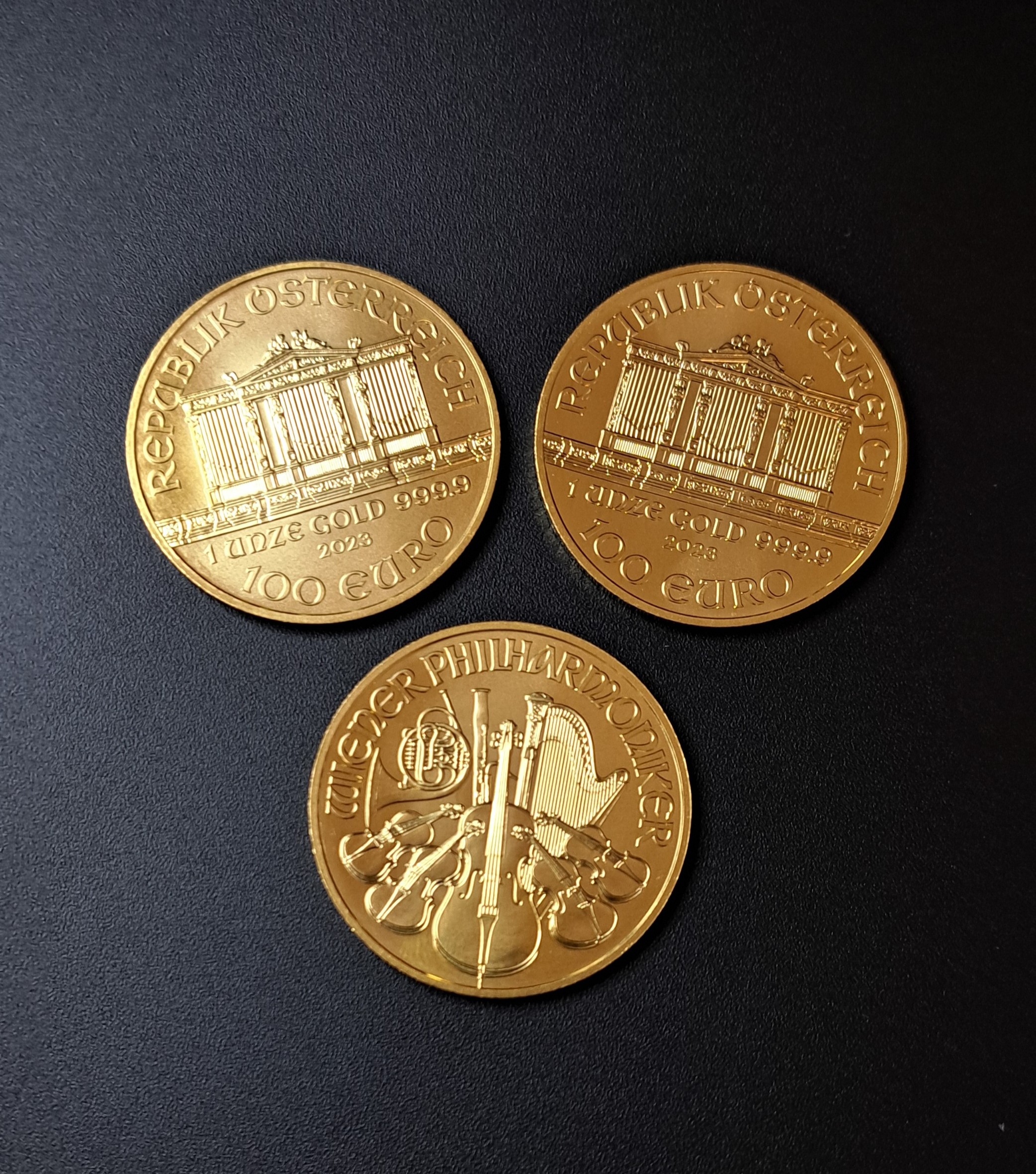 Die erste Prägung der Gold Wiener Philharmoniker wurde 1989 von der europäischen Prägeanstalt Münze Österreich ausgegeben. Zu erkennen ist sie an der Abbildung verschiedener Instrumente der Wiener Philharmoniker und einer imposanten Orgel auf der Vorderseite der Münze. Die Philharmoniker Münze erfreut sich als einzige europäische Anlagemünze großer Beliebtheit und entwickelte sich schon kurz nach ihrer ersten Prägung als die meistverkaufte Münze Europas.